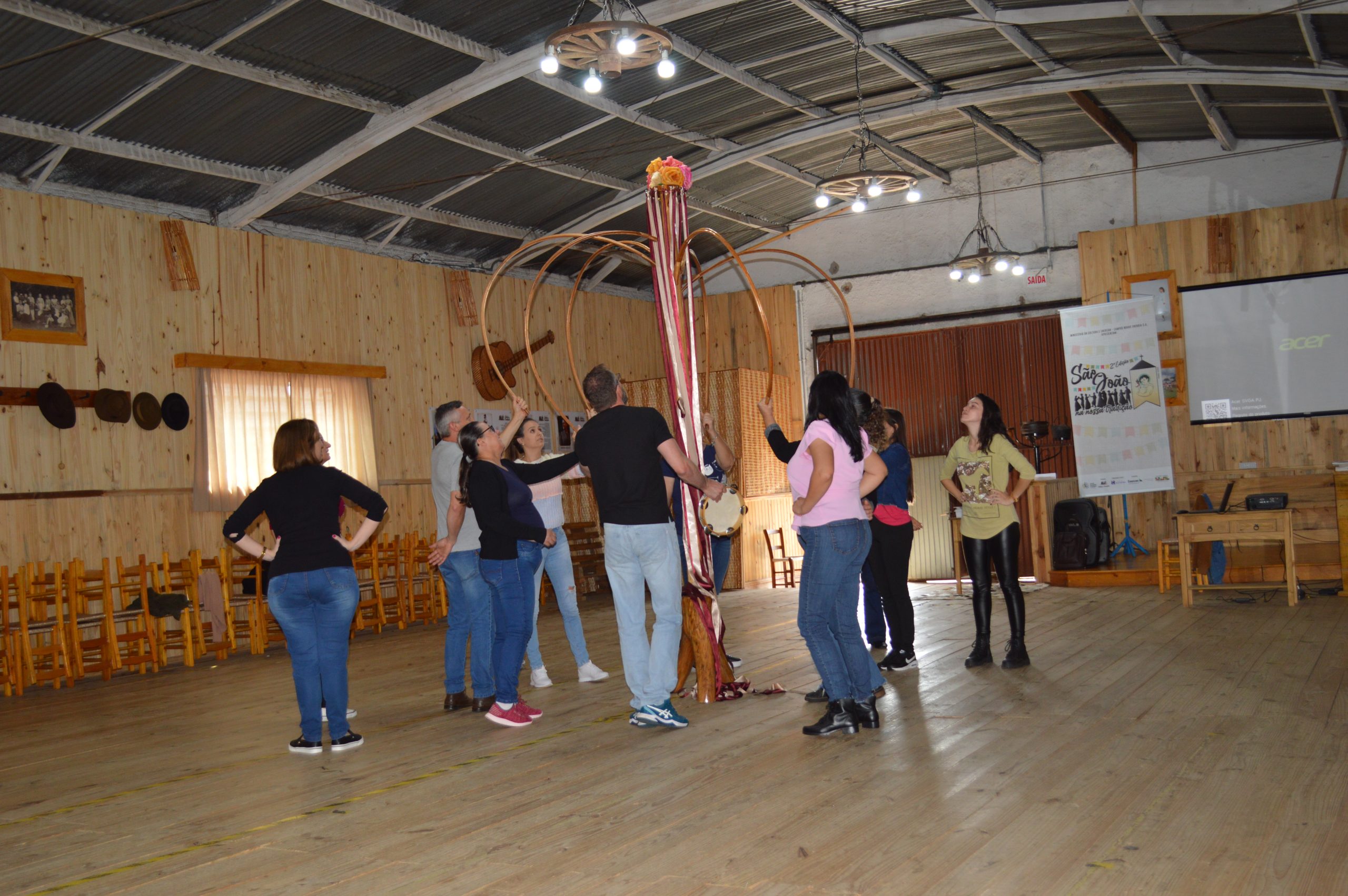 O Conjunto Folclórico Celeiro da Tradição realizou nos dias 09 e 10 de maio o “Curso Festas Juninas e Identidade Cultural”, uma ação que faz parte do Projeto São João da Nossa Tradição II, viabilizado pelo Ministério da Cultura através da Lei de Incentivo à Cultura, com Coordenação Técnica do Instituto Humaniza, Patrocínio da Enercan – Campos Novos Energia S.A. e apoio de várias entidades culturais.